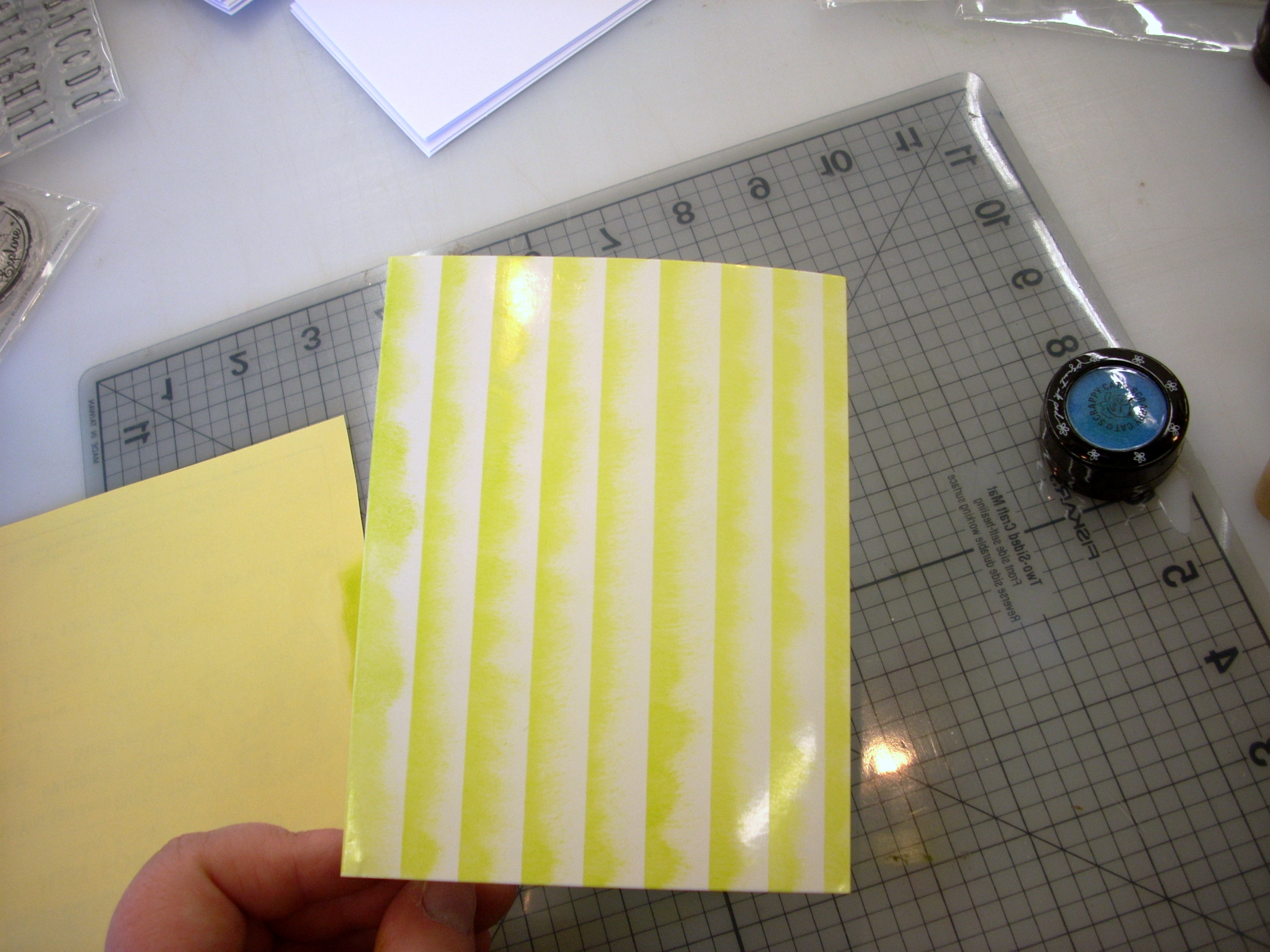 Let the green ink dry throughly. This will take a little while as pigment inks dry slowly on the glossy cardstock.