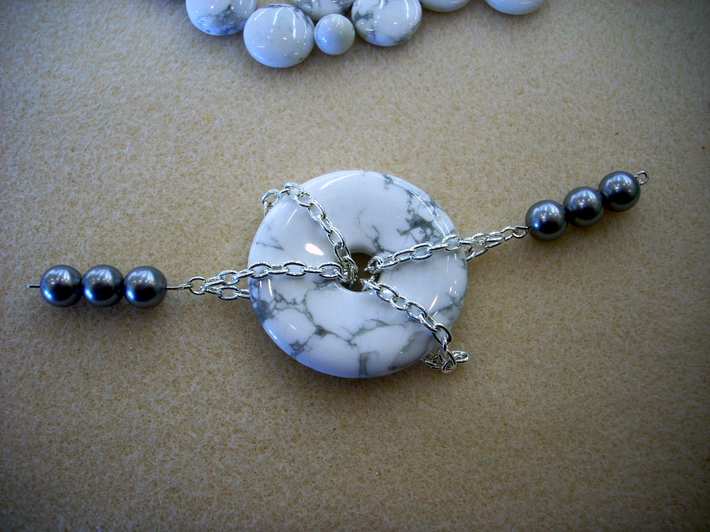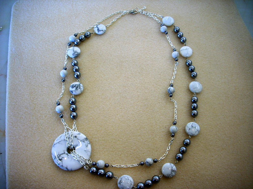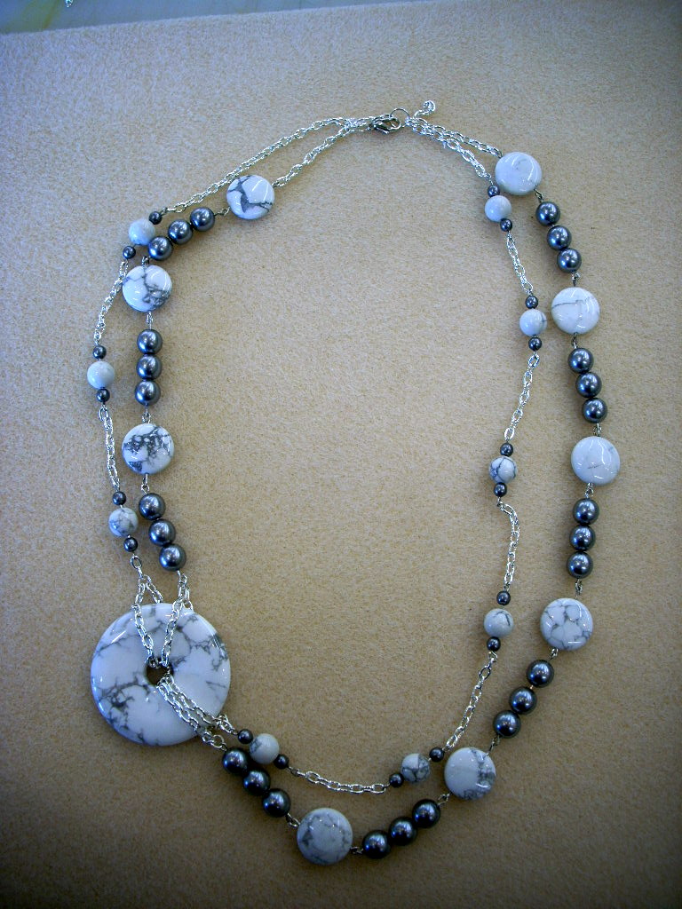 The Howlite and gray glass pearl beads in this piece give it a great high-end, sophisticated look that is actually easy to put together. Really!