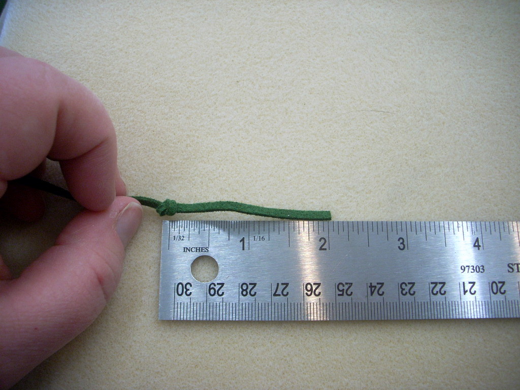 Unwind the suede cord and give it several tugs to straighten out some of the kinks.