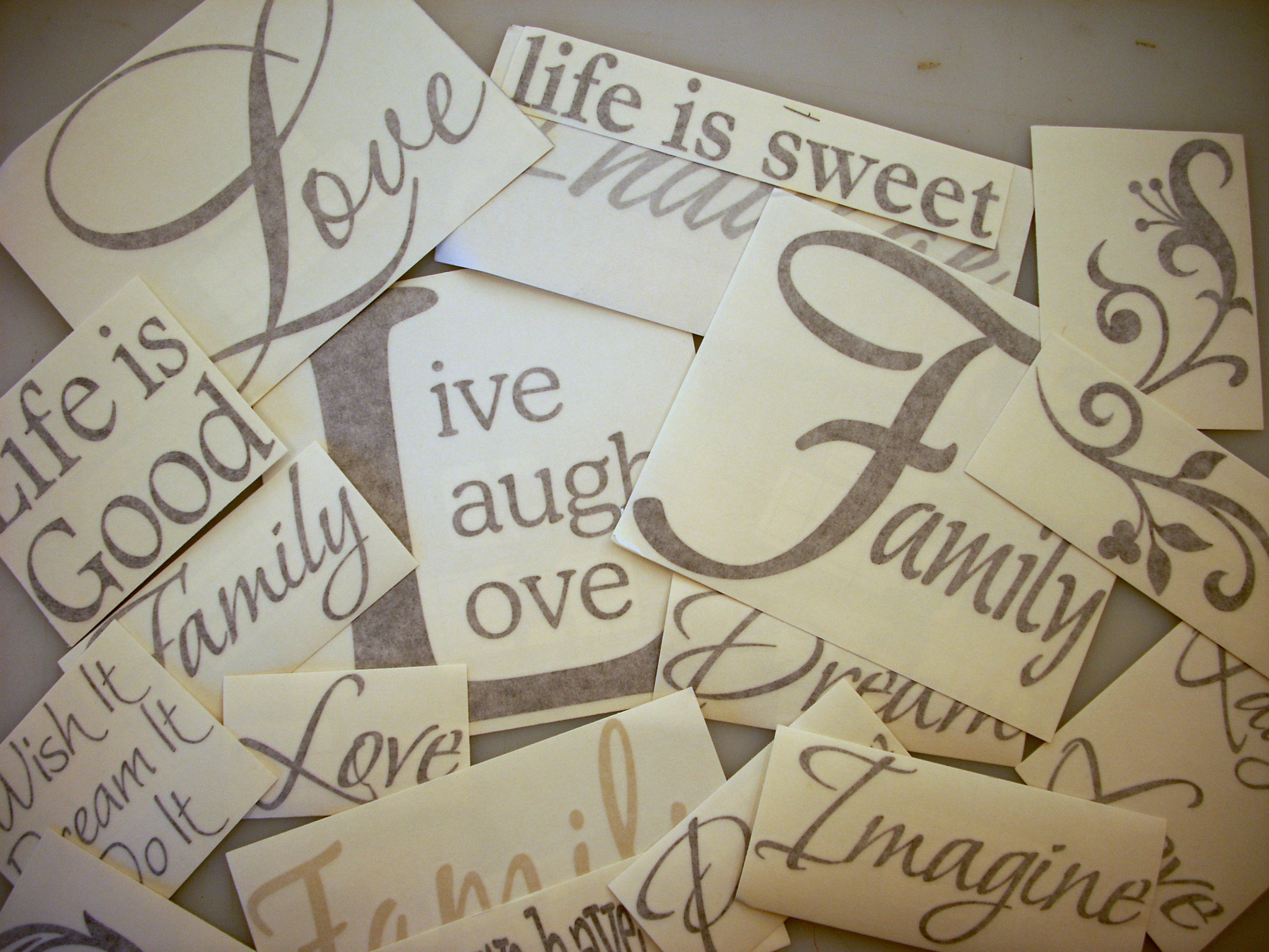 There are plenty of options for using the Vinyl Words transfers (on KraftyBlok or off).  If you use them send along a picture.  I’d love to see what you do!