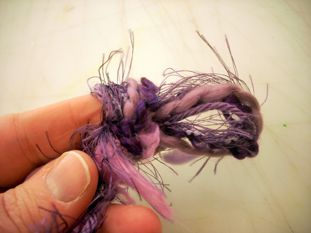 Make two more long strands of knotted yarn like the first.