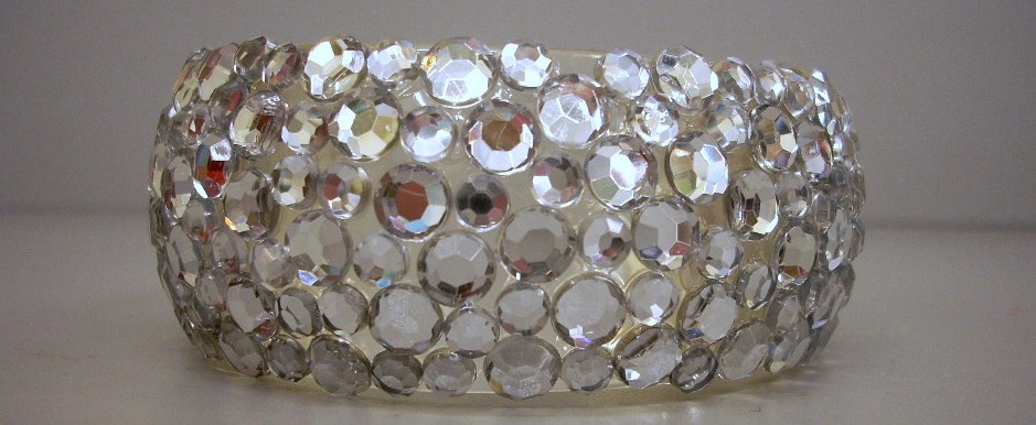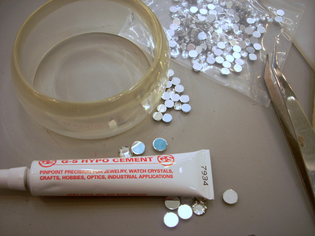 I used hypo-cement to glue two sizes of rhinestones all over the bracelet.