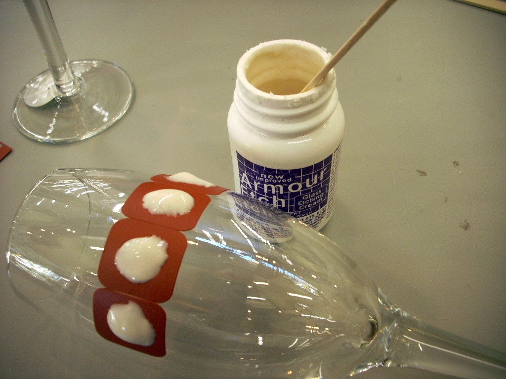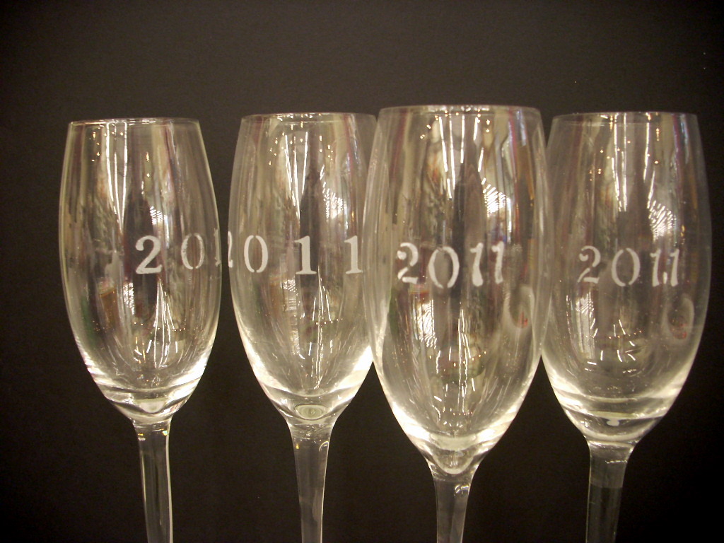 Simply use the Armour Etch numbers and follow the directions on the bottle. You can have a glass done in no time at all, a couple of hours and you can have enough done for everyone at your gathering.