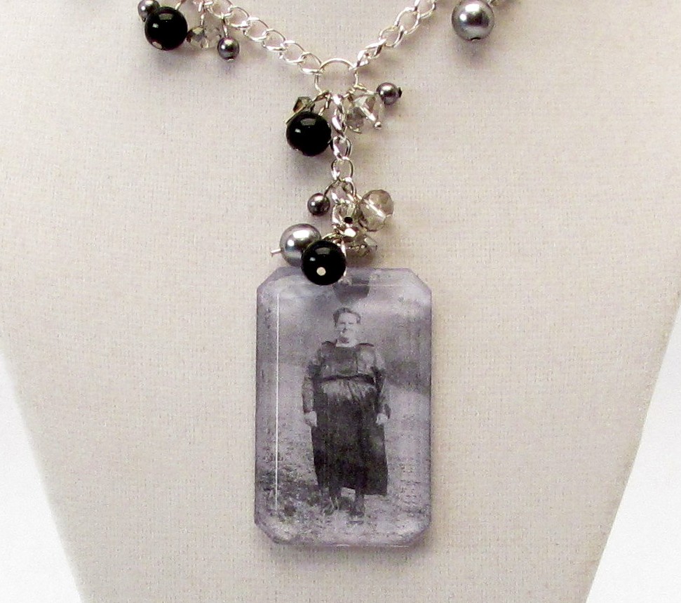 For this hop I was asked to make a piece of jewelry and I knew right away that I wanted to work a photo of my Great Grandmother into my piece. Combining two loves… jewelry making and family history.