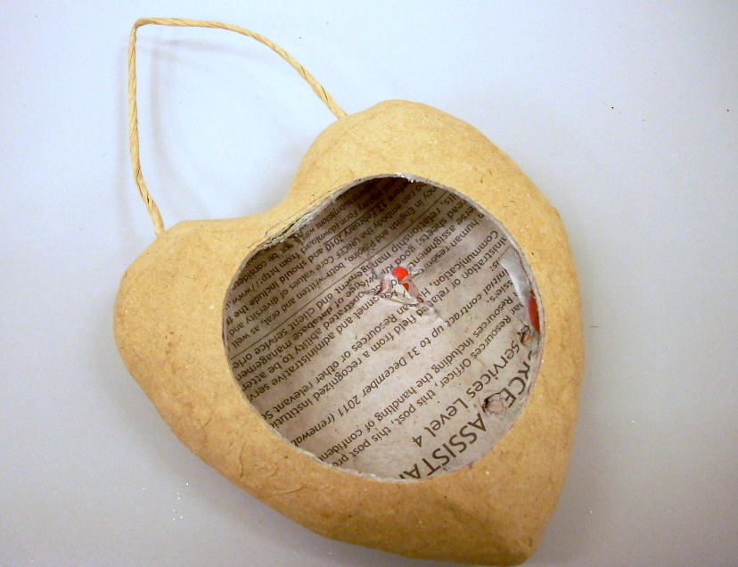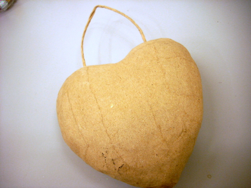 I found a paper machè heart at the craft store and this is what it looks like right after you rescue it from the peg at the craft store.