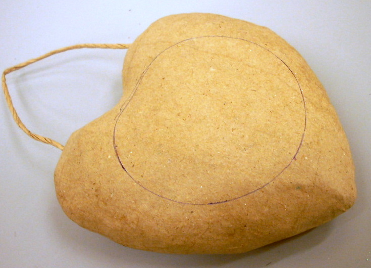 So I used the cardboard end from a roll of ribbon and traced a circle on the front of the heart.
