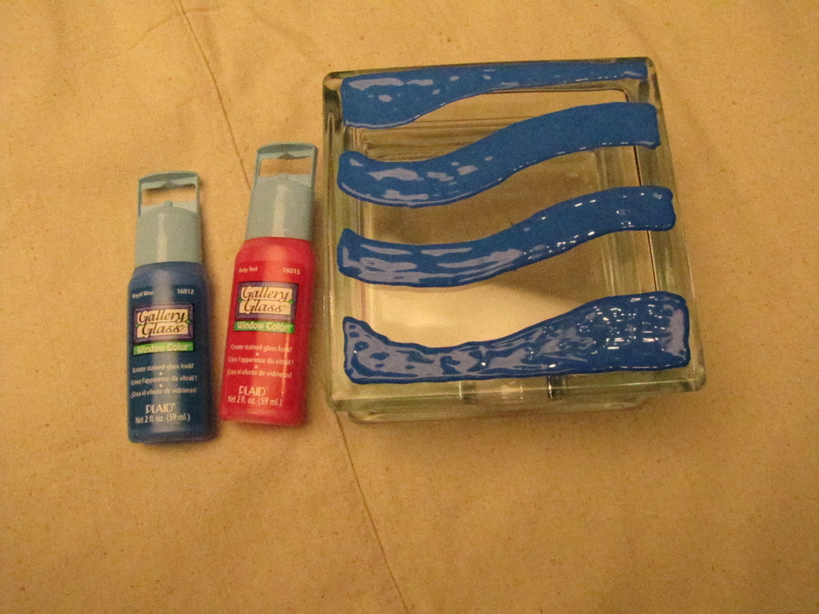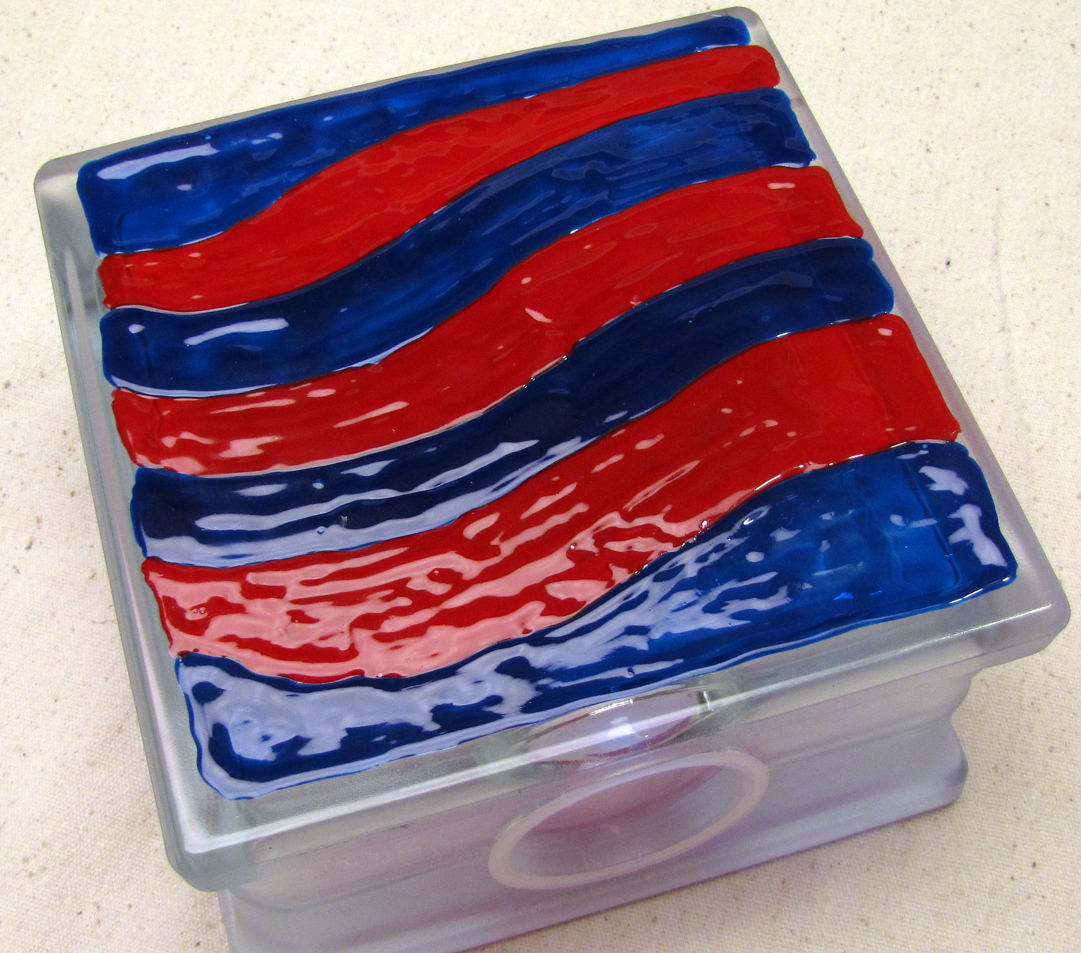 I made some free hand waves with Royal Blue Gallery Glass. I didn’t use any of the leading. Just the paint.
