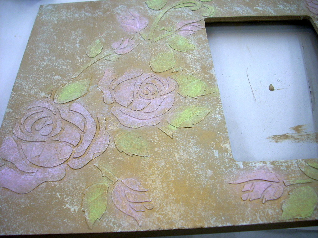 CAREFULLY remove the stencil from the frame after you’ve filled in the areas you want. Cut the stencil and arrange it on the frame so that you can add to the decoration without overlapping what you’ve already done. You can also wait until one portion is dry before moving on to the next.