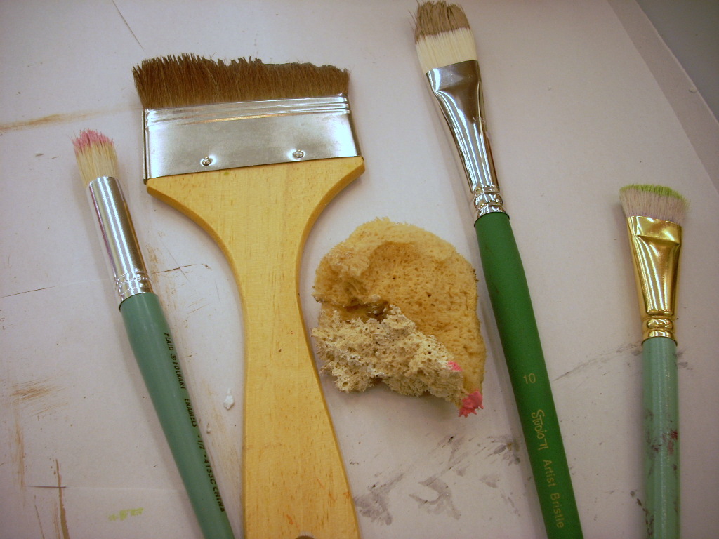 If you get a tiny bit of modeling paste into an area you don’t want filled you can scrape it away with the point of the palette knife. Let dry throughly.