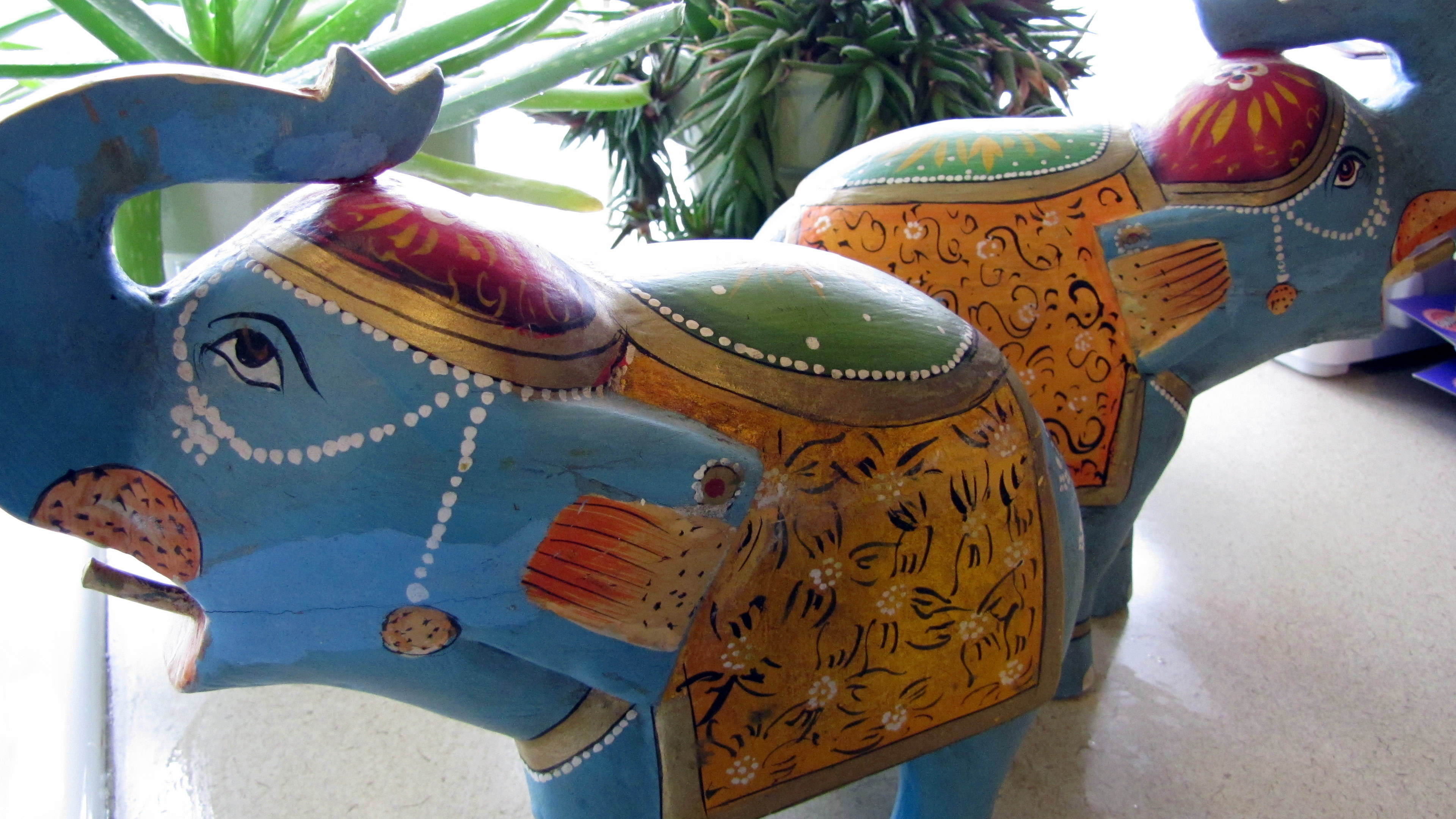 Last Thursday I posted some items on my Facebook Page of items I saw while out thrifting but didn’t buy. Here are a couple of things I DID buy. Aren’t these elephants great? They are made of wood and hand painted. The one on the left had broken at some point and someone glued it back together and tried to paint over the crack but weren’t quite able to match up the paint. I figure that for 60 cents each they can go in my garden if I can’t live with the mismatched paint job.