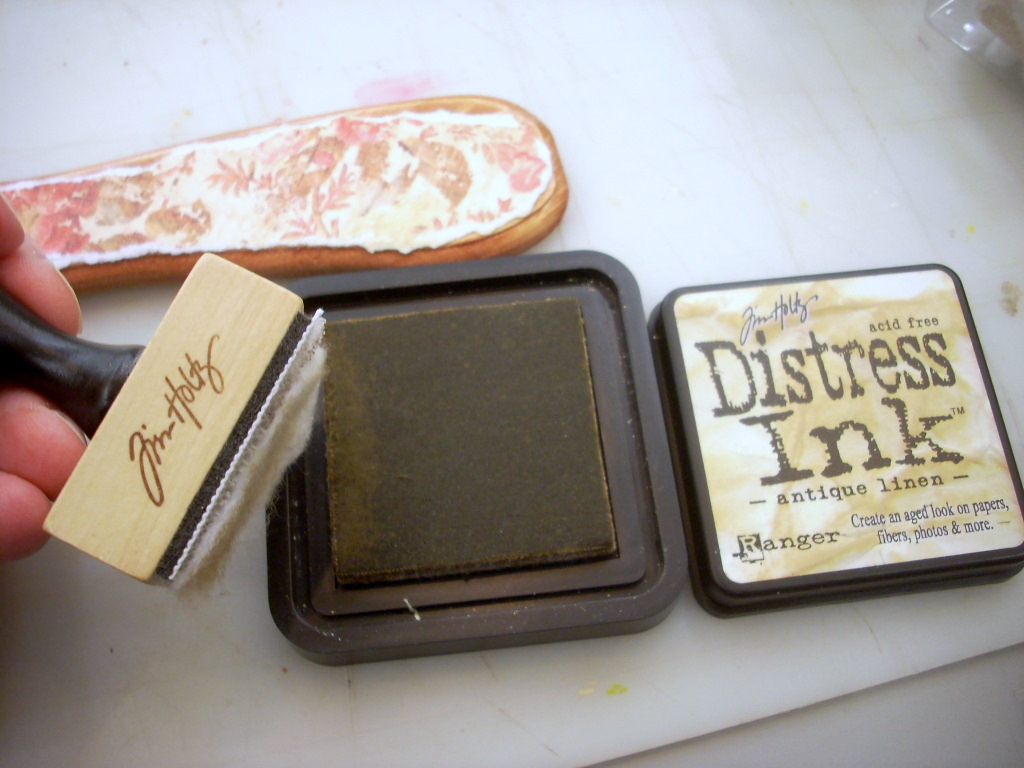 So I used Distress Ink in antique linen and an alcohol ink applicator to rub ink onto the paper, most especially on those too white edges.
