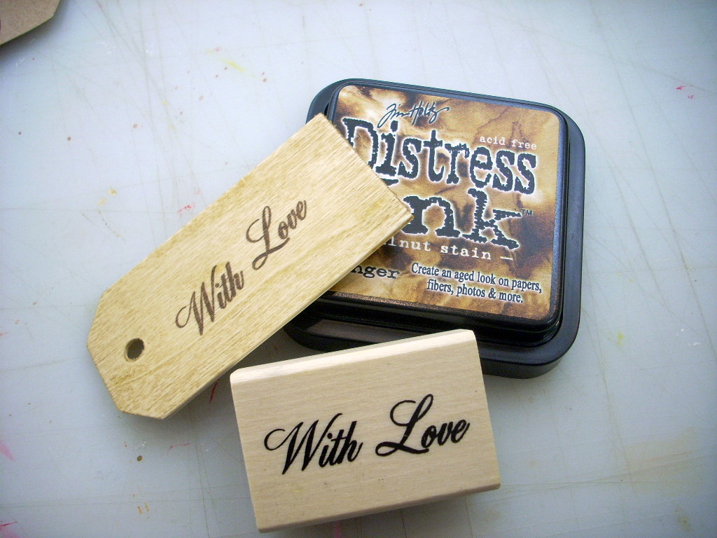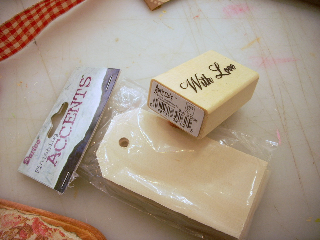 Some Darice wooden gift tags and a “With Love” stamp from Anita’s.