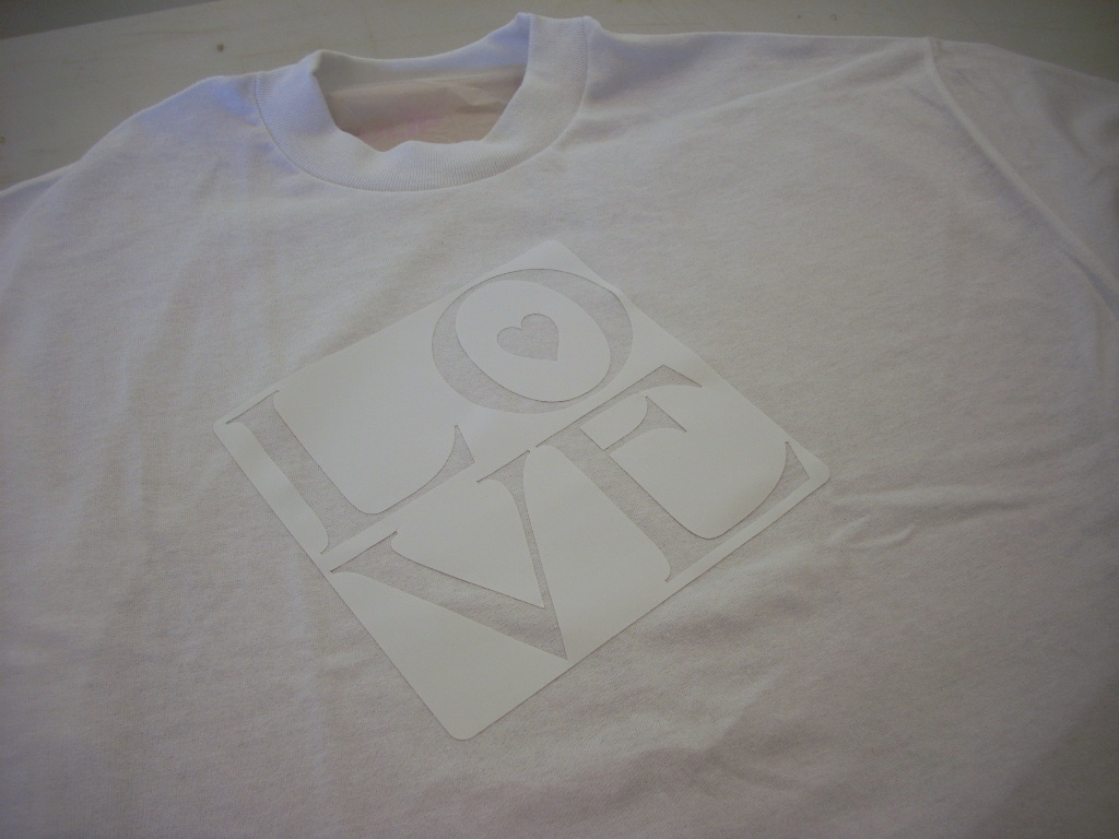 I applied the LOVE Vinyl to the front of the T-Shirt. Apply according to package and make sure to burnish the vinyl with your fingers. Especially at the edges.
